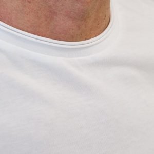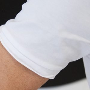 T-shirt Bianca a manica corta strutturata con finiture in taglio vivo su colletto e sulla manica arrotolata.